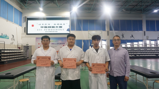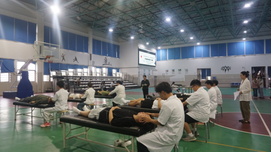 比赛现场,选手们按抽签顺序依次上场与模特配合完成头面部、颈肩部和背腰部的保健按摩操作,他们动作规范熟练,展示了扎实的中医理论基础和实践经验。经过紧张而激烈的角逐,3名选手以出色的表现、娴熟的技艺在大赛中崭露头角,获得荣誉,江成鹏为其颁奖。