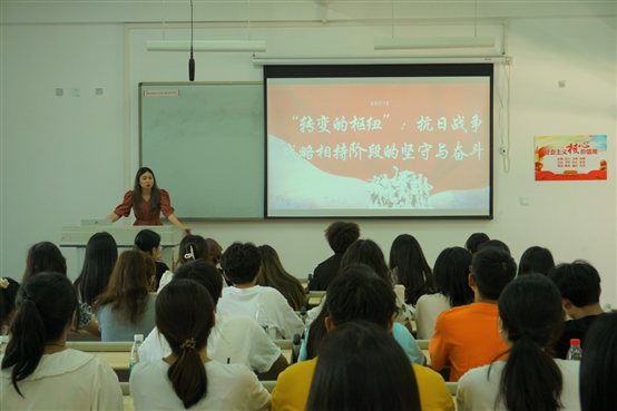 栗景霞老师以抗日战争为主线,讲述了中国共产党在战略相持这一重要时期面对的三个难题,审时度势、迎难而上,找到对应的三个解决方案,最终扭转抗日战争局势所付出的坚守与奋斗。对同学们提出要发扬抗战时期党形成和培育出的自力更生、艰苦奋斗、全心全意为人民服务的“延安精神”,抓实抓牢专业基础,牢记初心使命,开创美好未来。同学们认真听讲,从革命先烈的英勇事迹中,深深感受到了信仰如火炬,理想如明灯,烛照着革命时期共产党人的奋斗之路。大家表示作为新时代老员工,要用历史映照现实、远观未来,要从党的坚守与奋斗中感悟真理,汲取继续前进的智慧和力量,为实现中华民族伟大复兴的中国梦奋斗不息。