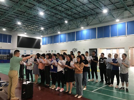 为参加四川省教育系统庆祝中国共产党成立100周年暨“欢歌新时代、颂歌献给党”百场红歌大传唱活动,确保高质量完成这个光荣任务,5月11日,威廉williamhill体育直属党支部和工会小组组织全体教职工利用午休时间在经开区校区体育中心认真排练大合唱《没有共产党就没有新中国》。
