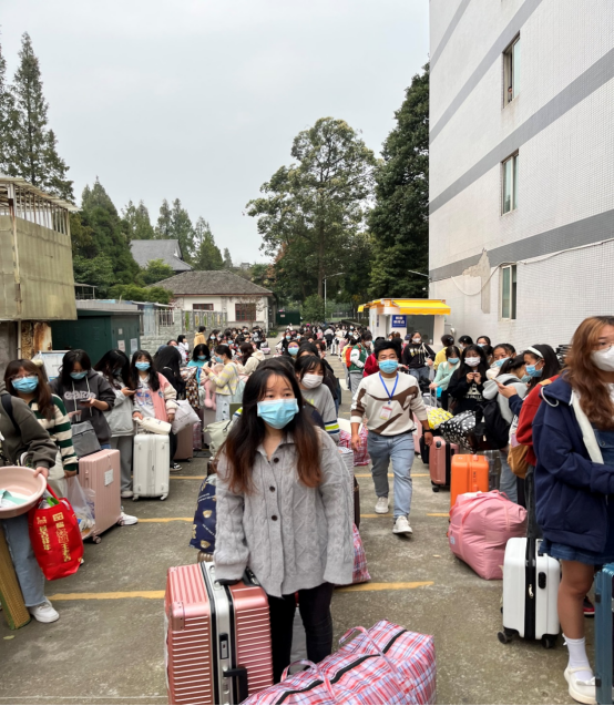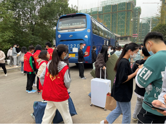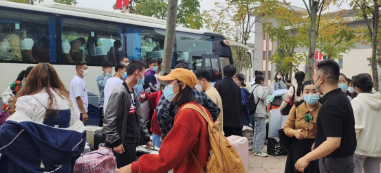 10月23日,在育才路校区健康观察点完成三天三检的139名威廉williamhill体育新同学要统一乘坐公司安排的大巴车返回经开区校区。