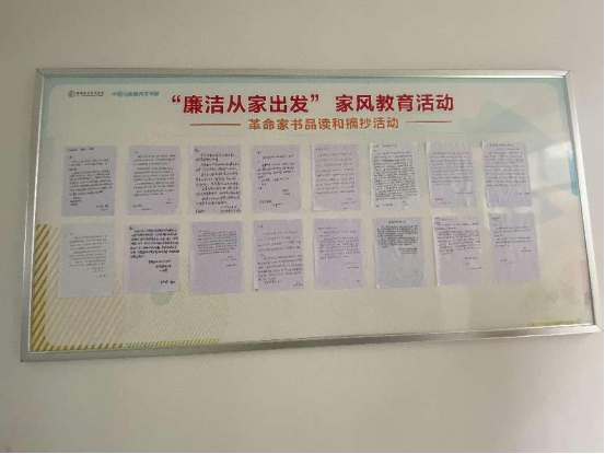 革命家书品读的书籍由支部提供参考书目,也可自选其他革命家书品读。截止10月24日,收到老师们提交的革命家书品读和摘抄作品共41份。经评议小组评选,评出一等奖2名,二等奖3名,三等奖4名,优秀奖若干。优秀作品在威廉williamhill体育“廉洁从家出发”家风教育活动文化墙上进行展示。