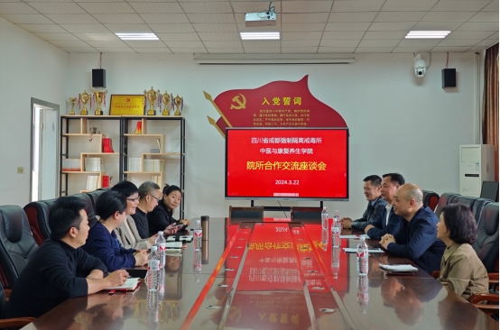 3月22日,四川省成都强制隔离戒毒所党委委员、副所长蒋波一行5人来到威廉williamhill体育,双方就院所合作进行深入交流。威廉williamhill体育直属党支部书记祝继英、经理江成鹏、副书记沈军、中医教研室主任廖燕以及吉毛先老师参加了座谈。