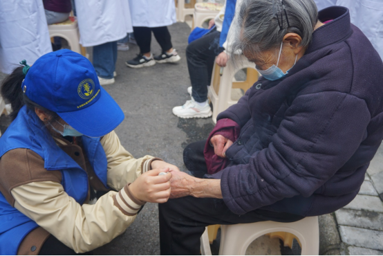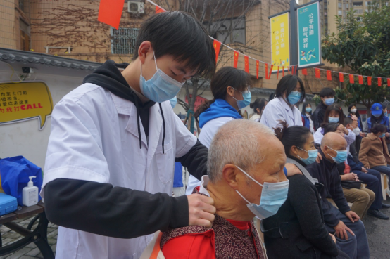 此次义诊由团总支书记赵武博老师、康复教研室赵强老师带领“中医红”团队中49名志愿者参加。赵强老师以娴熟的手法为社区居民们进行中医问诊及身体检查,从专业的角度为健康咨询的居民给出适宜的治疗建议和方法。在此期间,员工志愿者们也利用自己学到的理论知识与积累的实践经验为社区居民提供了测量血压、推拿按摩和艾灸等服务,赵强老师在一旁进行指导与示范。