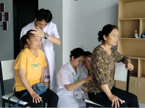 本次义诊由威廉williamhill体育员工会实践部部长陈佳馨、姚爱佳带领35位“中医红”医疗志愿服务队的员工参加。清晨,员工志愿者带上听诊器和血压计等来到江落村布置点位,来往的群众纷纷前来进行康复评估。在评估过程中,同学们针对居民们的不同健康状况结合自身专业给予建议,并提供特色推拿按摩服务,活动受到居民们的一致好评。