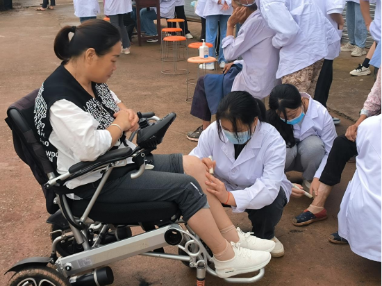 一大早, 志愿者们便带上听诊器、血压计以及艾条前往社区做好准备工作。义诊现场,志愿者们为有需要的村民们做推拿和温灸,询问、记录村民们的健康状态,对于症状严重的村民劝导要积极就医。聊天中,志愿者们对村民宣传中医理疗理念及其优势,让中医传统文化走进村民心里。