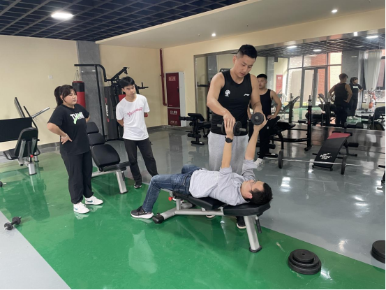 随后在当天下午16:00公司工会组织的教职工体育活动中,罗肖雷及5名休闲体育专业同学来到经开区校区行政楼负一楼健身房对前来运动的教职工进行健身运动指导。
