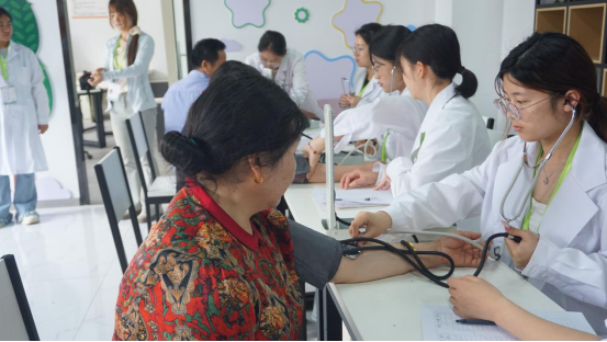 活动中,员工志愿者们将理论与实践相结合,以专业的态度为社区居民们提供测量血压和推拿按摩服务,普及中医保健养生的生活常识和方法技巧。活动结束,志愿者们打扫卫生,归还物品,有序离场。