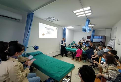 会上,李明荣副教授详细讲解了感觉运动控制重建技术关于关节运动功能障碍康复的思路以及欧式正脊手法的临床应用,对欧式正脊手法进行了详细的操作演示,并在会后为一位踝关节损伤患者进行了现场查房教学。