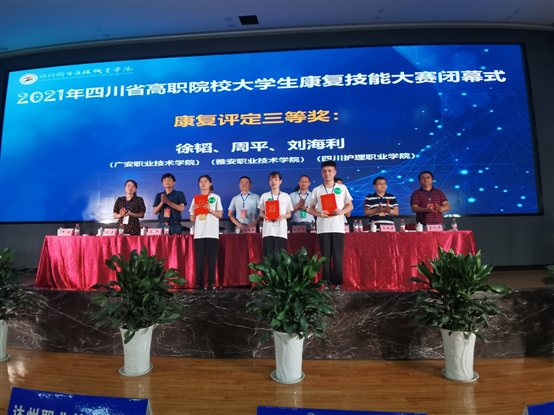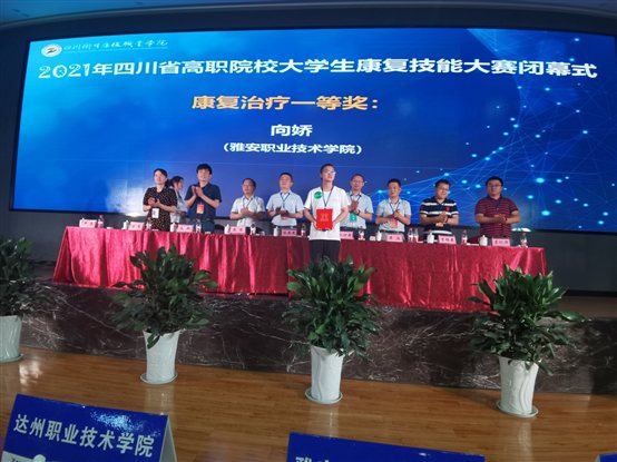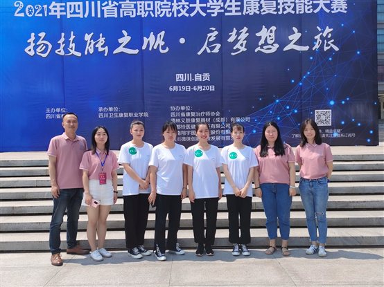 6月19-20日,2021年四川省高职院校老员工康复技能大赛在自贡市举行。本次大赛由四川省教育厅主办,省内12支队伍参赛。威廉williamhill体育副经理庞嘉言带队,三名指导老师王源、王雪、周媛玲带领4名康复治疗技术专业学子参加了比赛。