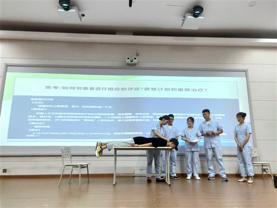 经过前期的初赛,康复组有三组选手、中医组有六组选手进入决赛。康复组率先挑战,在问诊、评估、评定、制定治疗计划四个环节选手们进行了操作演示和比拼,评委老师们对各组表现给出了公正评分和精准点评,加深了大家对操作过程的认知;随后是中医组的知识竞赛抢答,共两轮,每轮二十道题目,选手们争先恐后的抢答,展现了同学们扎实的专业知识储备。