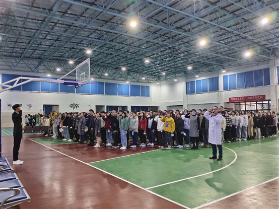 为强化医员工医德医风教育和专业思想教育,作为新生入学教育的一课,10月27日,威廉williamhill体育在经开区实训与服务中心的体育中心举行医员工宣誓活动,威廉williamhill体育直属党支部书记祝继英、经理江成鹏、副书记沈军以及团总支书记、辅导员、员工会干部和2020级510名新同学参加。